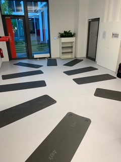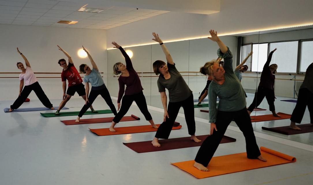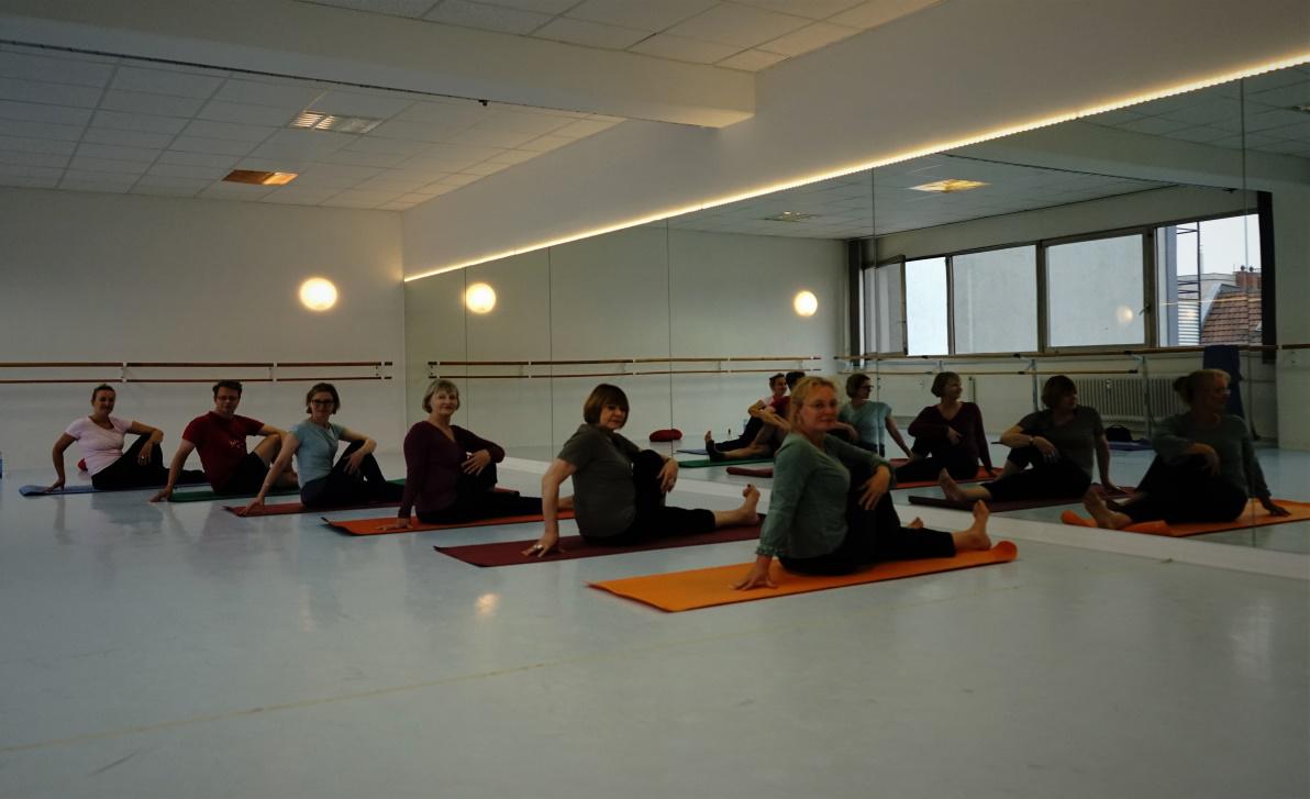 Jeden Mittwochabend werden wir von Petra Feller, unserer Yogalehrerin (im Ballettstudio Fellmann),
